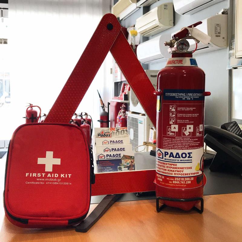 - Πυροσβεστικά είδη: Πυροσβεστήρες παντός τύπου, πυροσβεστικές φωλιές, πυροσβεστικοί σταθμοί, καθώς και εξοπλισμός ασφαλείας για επαγγελματικά οχήματα.